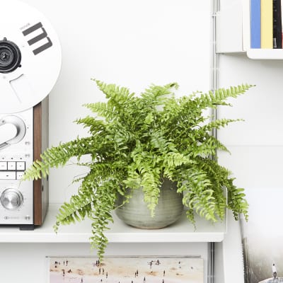 Bertie, the Boston Fern, really really loves humidity. Like a lot of ferns, she’s used to living in partial shade, so she’s ideal for a room with lower light and she will happily bask in the steam in your bathroom.